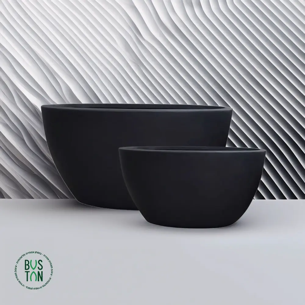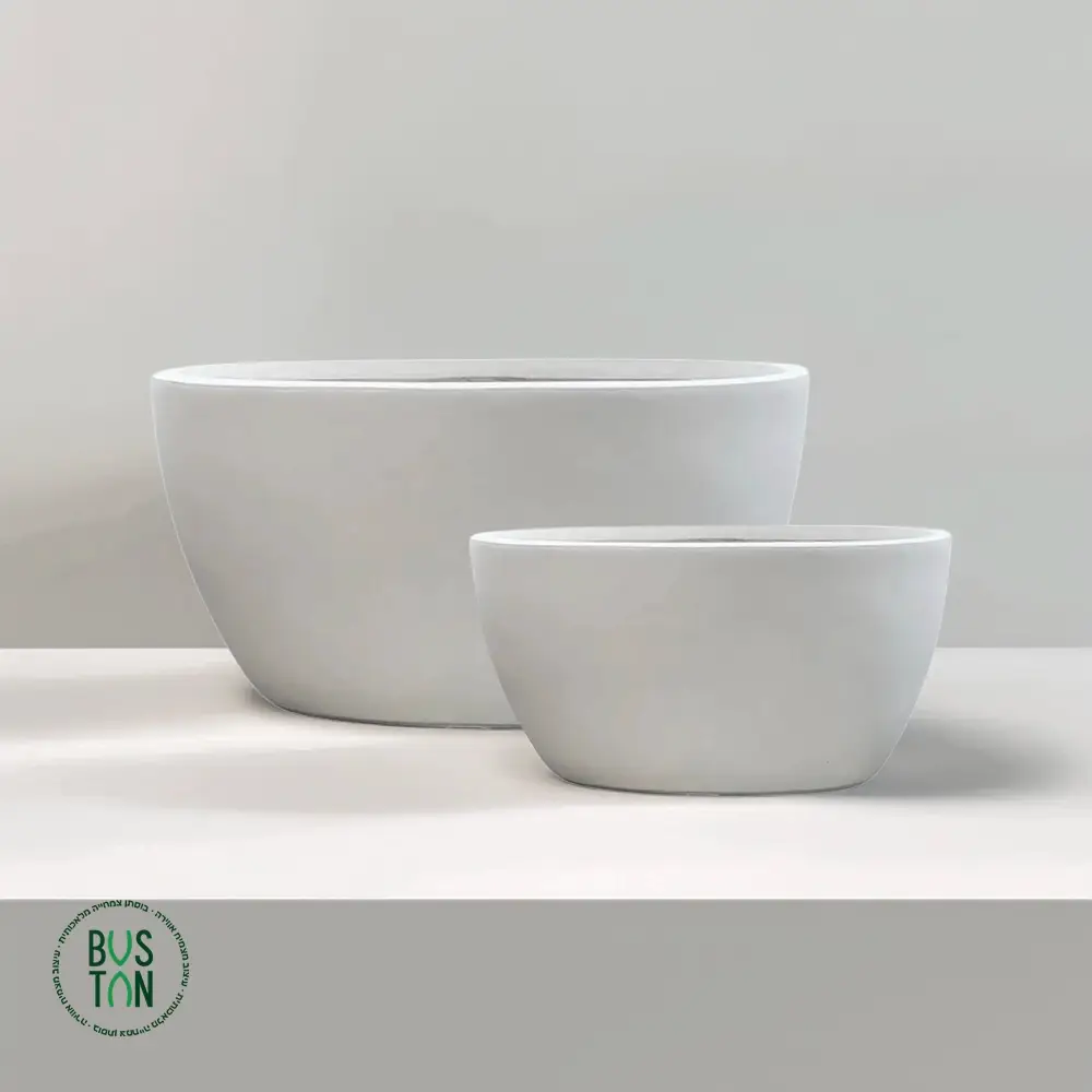 אדניות פיברגלס רחבות בעיצוב אליפטי. כוללות חור לניקוז, קלות ועמידות לחוץ ולפנים