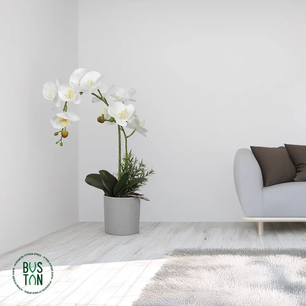 הסחלב נראה נהדר בכל חלל – מונח על שולחן קפה, מדף, שידה או אזור קבלה – ומוסיף תחושת ניקיון, רוך ואיזון. העלים הירוקים הרחבים והגימור המעודן של הפרחים מעניקים מראה מציאותי ונעים במיוחד.