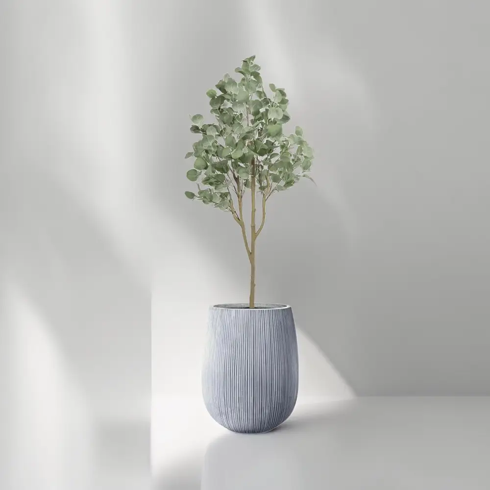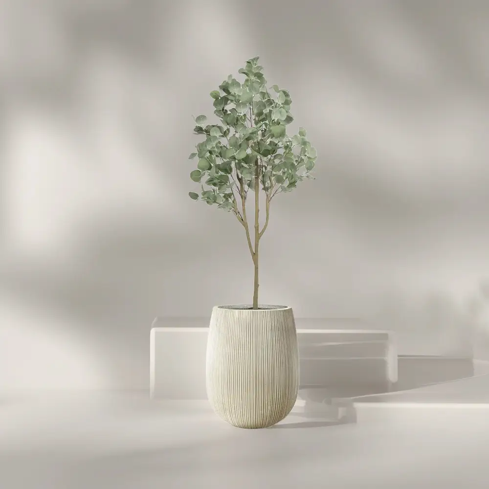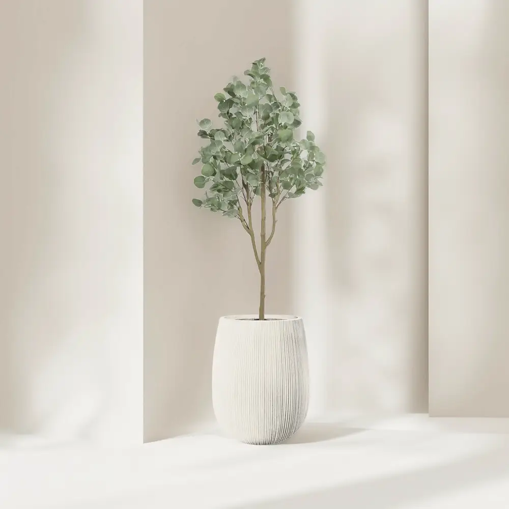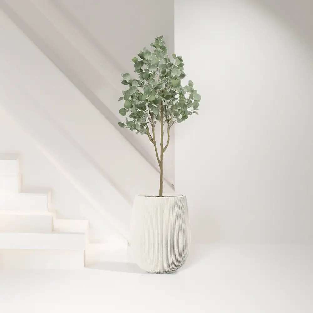 הכניסו את הטבע הביתה עם עץ אקליפטוס מלאכותי בגובה 1.5 מטר – פריט עיצוב אלגנטי ומדויק שמוסיף שקט, ירוק וסטייל לכל חלל. העץ משלב בין מראה טבעי, עלים רכים בצבע ירוק אפרפר וגזע מדמה עץ אמיתי, לבין כד אתונה בגימור פסים אנכי, המעניק תחושת גובה, סדר וניקיון עיצובי.