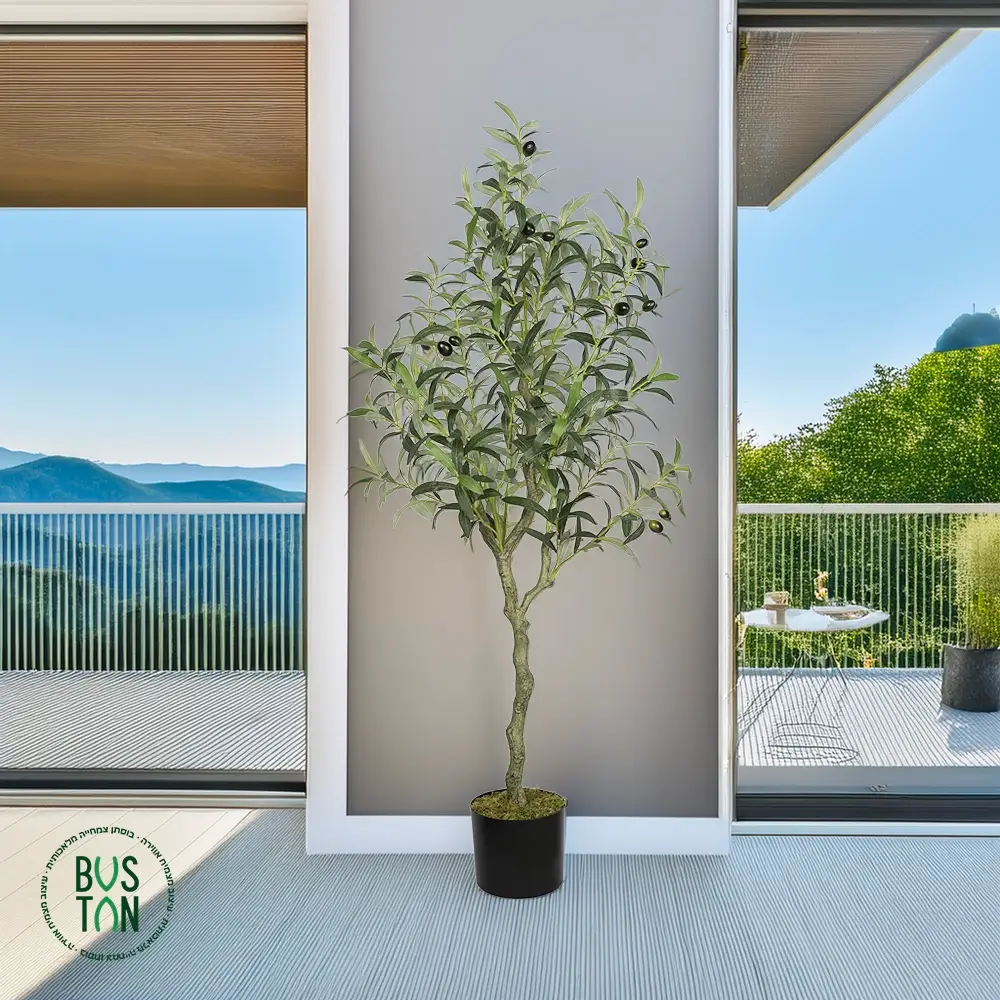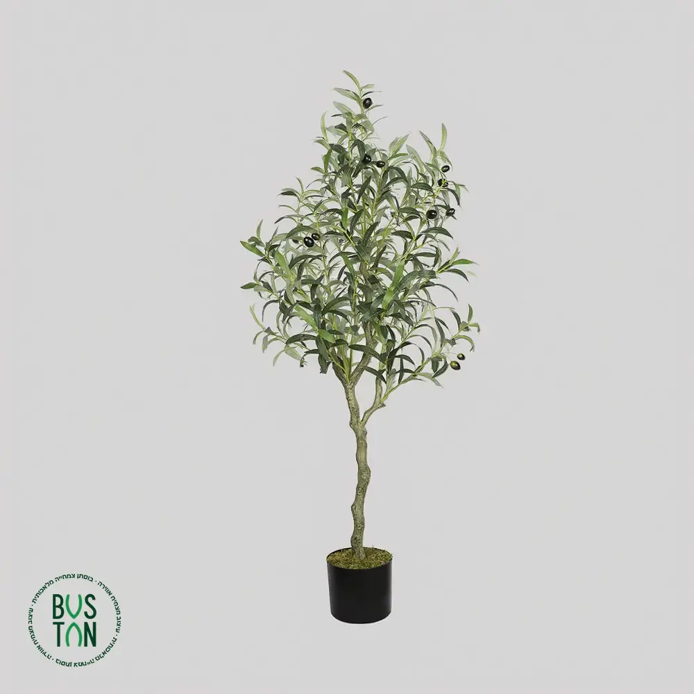 עץ זית סינטטי יוקרתי בגובה 1.2 מטר, בעל מבנה עבות ועלווה עשירה במיוחד. מראה טבעי מרשים ורמת גימור גבוהה. אידיאלי לבית, משרד ולובי בעיצוב מוקפד