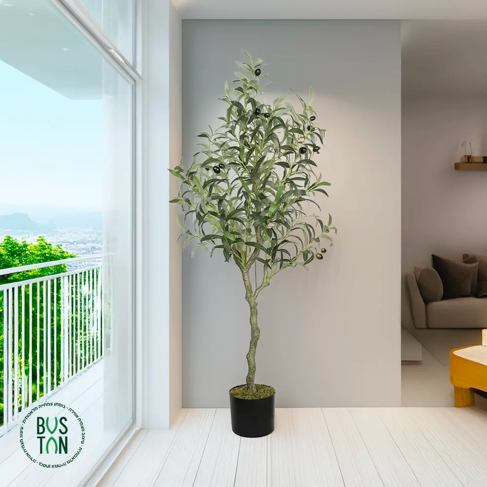 עץ זית סינטטי יוקרתי בגובה 1.2 מטר, גרסה מעוצבת ועשירה במיוחד של עץ הזית הקלאסי – נועד למי שלא מתפשר על רמת הגימור והנוכחות בחלל. עם מבנה עבות וסבוך יותר, ענפים מרובים ועלווה עשירה בצבע ירוק-זית רך וטבעי, העץ מעניק תחושה ריאליסטית יוצאת דופן – כאילו נלקח ישירות מהטבע והונח בפינת החדר.