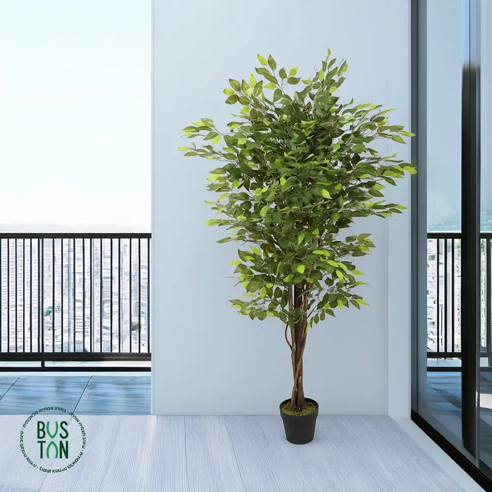 עץ פיקוס ירוק מלאכותי בגובה 1.8 מטר – עם גזע חזק ועלווה עשירה בצבע ירוק עמוק. נוכחות מרשימה שמוסיפה תחושת טבע, שקט ואלגנטיות לכל חלל – ללא צורך בתחזוקה.