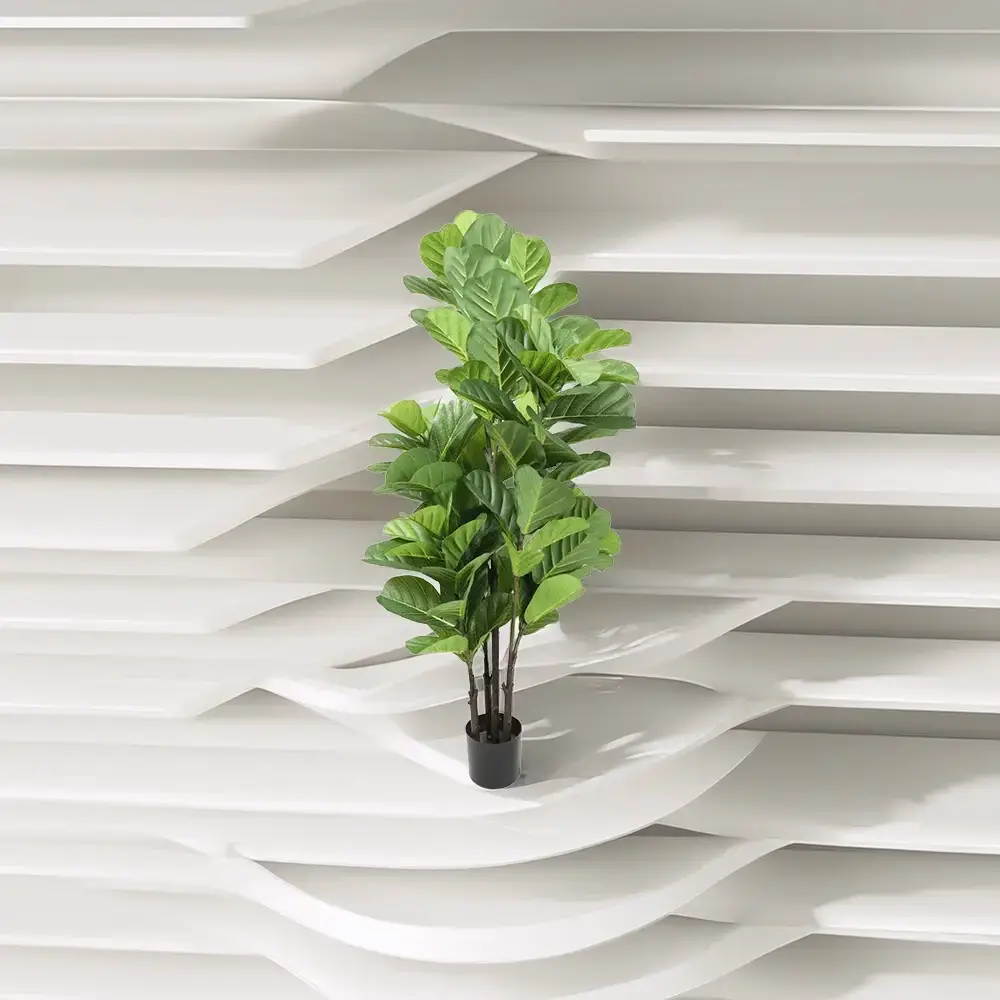 עץ פיקוס כינורי סינטטי בגובה 1.5 מטר עם הגנת UV – מושלם גם לשמש ישירה. מראה טבעי עם עלים רחבים ועשירים. אידיאלי לבית, מרפסת או לובי