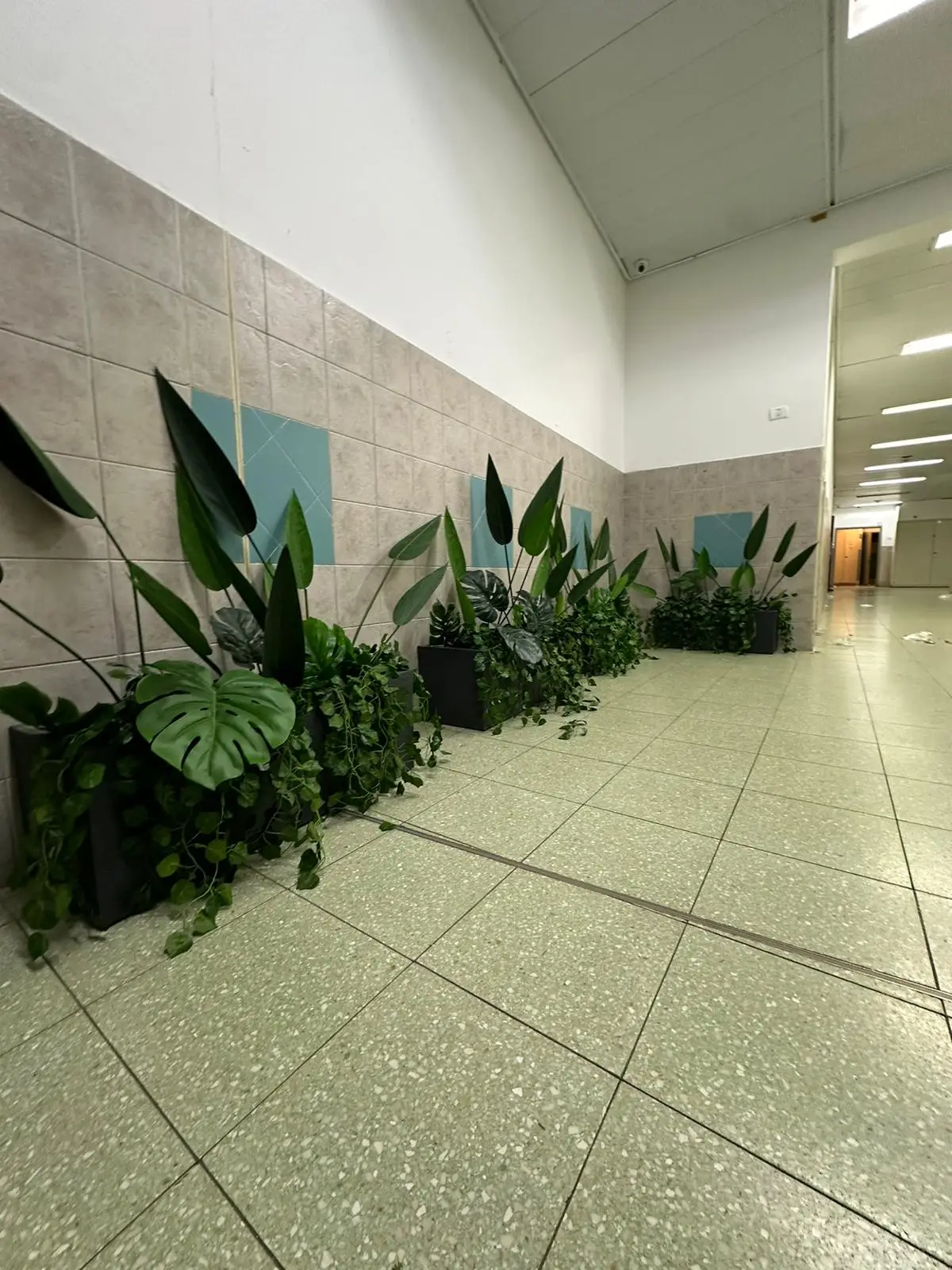 בחרנו לשלב צמחייה מלאכותית במיקומים אסטרטגיים: עציצים בכניסה – הצבנו עציצים מרשימים בכניסה לבית הספר, שהפכו את המראה הראשוני לאלגנטי ומכובד. צמחייה תלוייה ונשפכת – במעברים ובחללים מרכזיים תלינו צמחייה מדורגת, שתורמת לתחושת זרימה טבעית. מעקות ירוקים – הצבנו צמחייה נשפכת על המעקות, שהוסיפה חיים ואסתטיקה מיוחדת לכל אזור. אדניות בקומות – בכל קומה הוצבו אדניות מעוצבות, שמילאו את החללים בירוק עשיר ומלא חיוניות.